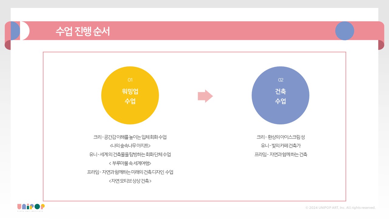 유니팝 크리에이티브 건축은 이러한 건축의 역사와 의미를 이해하고 세상에 존재하지 않는 나만의 창의적 건축물을 설계하고 제작해 보는 수업입니다.